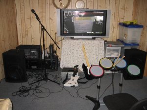 20. At the height of my Rock Band obsession, my Rock Band setup was kind of crazy: