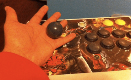 I struggled with this for awhile, until I saw a YouTube video of Daigo showing off how he holds a joystick. Unfortunately, I can’t find this video now. What I can show you is the grip I learned from that video. What he does is place the stick part of the Japanese ball-top joystick in between his ring and pinky finger. From there, he wraps his index finger and his thumb around the ball.