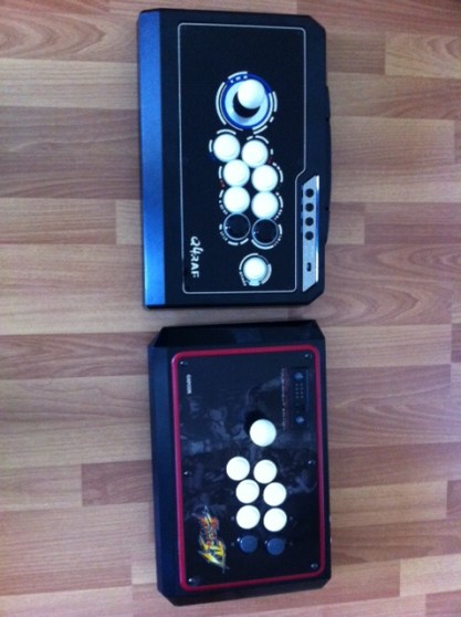 Removed from all of its packaging, this is the fightstick in the flesh. If you’re wondering how big it is, it’s about the same size as a Mad Catz TE. I’ve posted a comparison shot below.