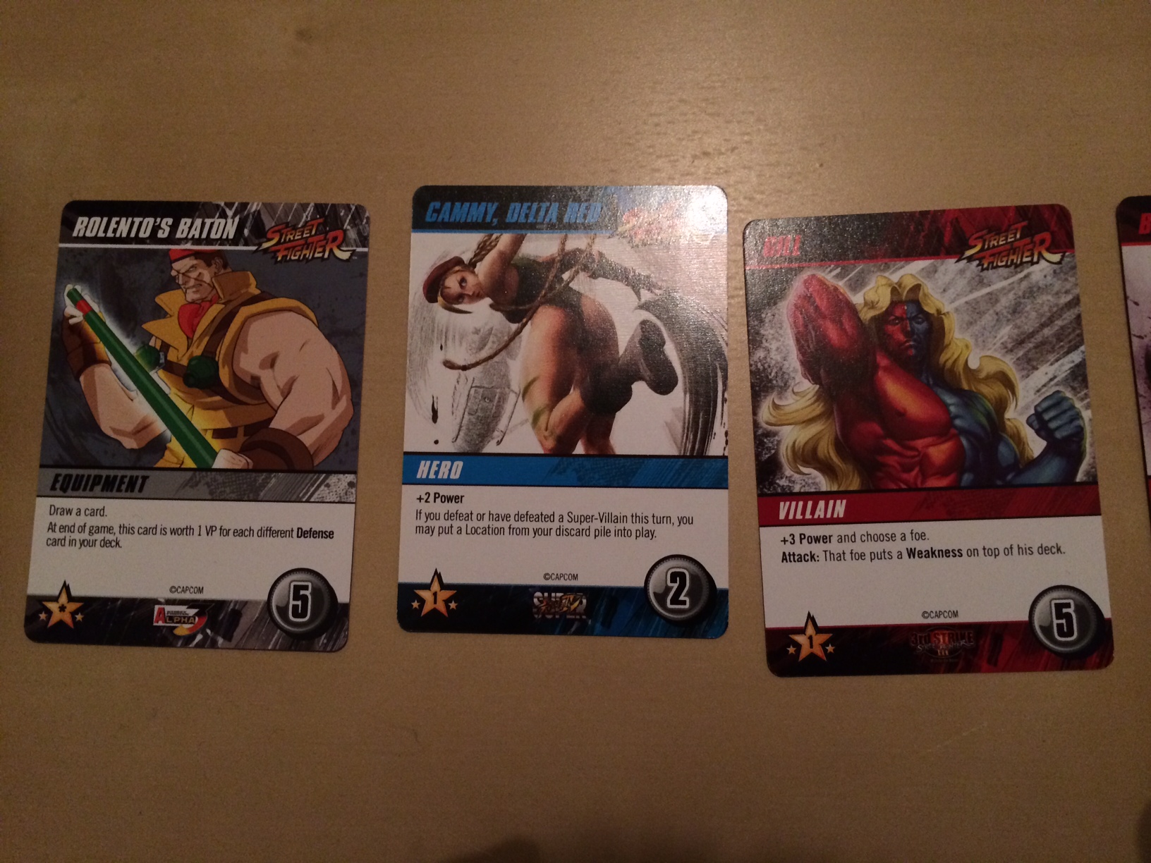 Years later, we finally get an official Street Fighter card game, courtesy of Cryptozoic Entertainment. Unlike Sirlin’s effort, which was crafted to simulate the Street Fighter experience as closely as possible, the Street Fighter Deck-Building Game is designed around an existing gameplay engine that currently powers deck-builders for DC Comics and The Lord of the Rings. Going in this direction doesn’t necessarily make for a bad game, but it’s lip service towards the source material will surely irritate fans of the franchise.