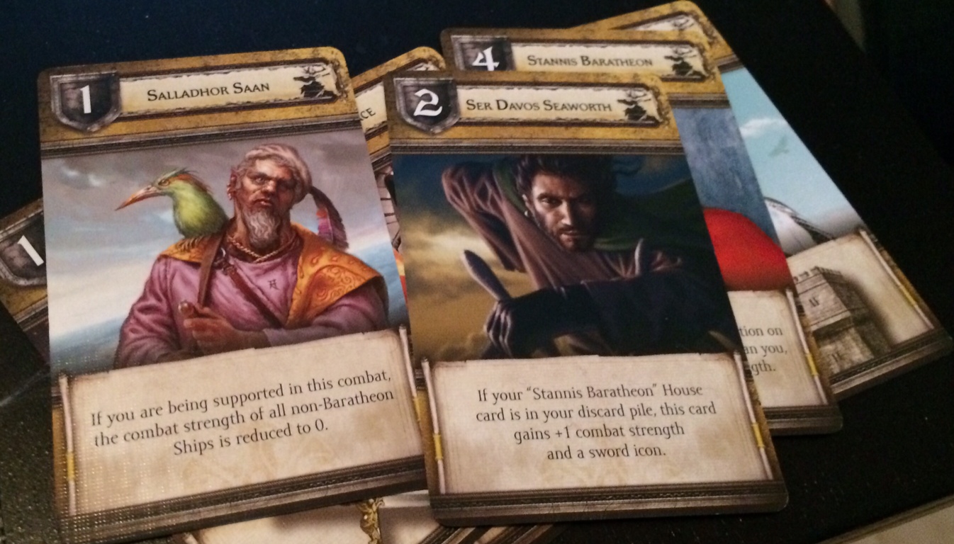 After each side’s initial strength is calculated, combatants play one House card from their deck that is played face-down before being revealed simultaneously. This final step will determine who wins and loses. Each player gets a small deck of cards that add strength or other effects to the combat. Each deck is also unique to the House you’re playing as. The tricky thing is that once you use that card, it’s gone until you’ve cycled through all of them. They become available again at that point, but you will lose access to it for a long time, and quite possibly for the rest of the game. Choose wisely when you’re in combat, as the card you use first may be better suited for a later encounter.