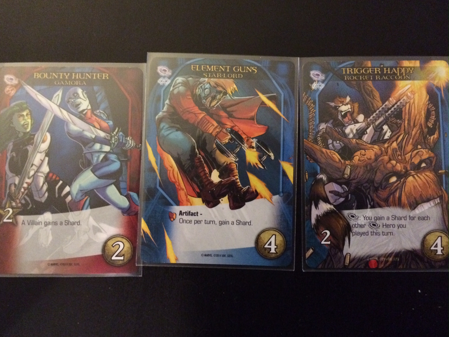 The most dramatic change to the game are the inclusion of Shards. These cardboard tokens are used to represent additional attack power that can be banked for future use. In cases where you need an extra nudge to hit a Mastermind, or want to defeat an an enemy but have a hand with only recruit cards, these come in very handy. Be careful though, as your enemies can and will use those same Shards against you. Gamora’s cards make great use of this new addition.