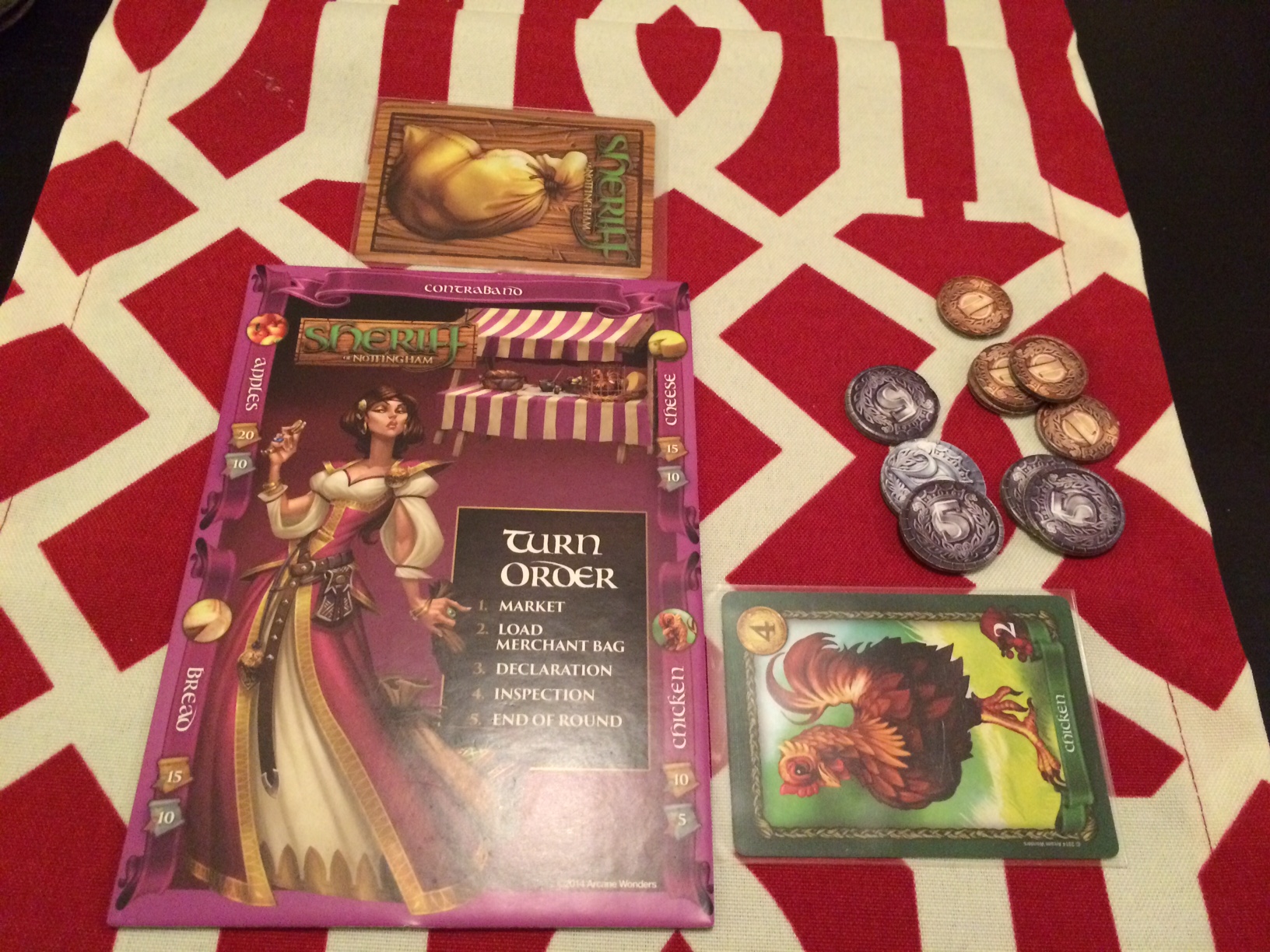 The round ends when the Sheriff has resolved all of the bags, whether they were opened or returned to the player. Whatever merchandise they were able to successfully get through is displayed in their shop. After each player has taken on the role of Sheriff twice, players are paid out based on their merchandise and the merchant with the most money wins.