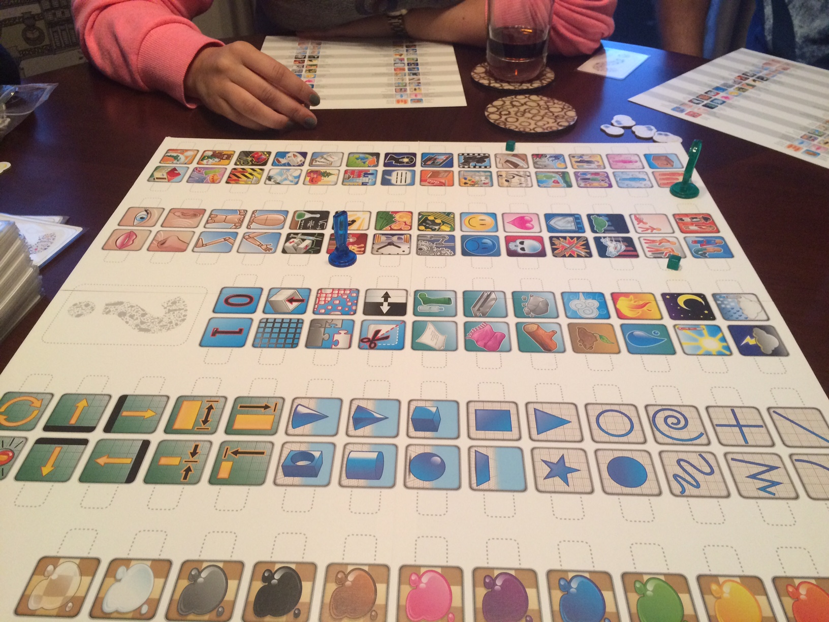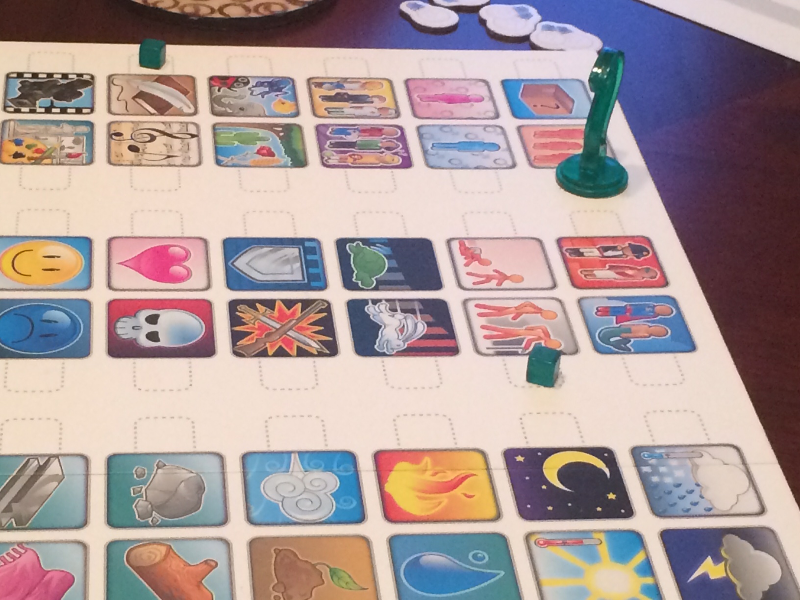 ConceptOnce that player has decided on a word, they’ll use the board and accompanying set of cubes and figures to try and communicate their concept. Featuring dozens of icons that communicate such things as phrases, people, shapes, animals and more, you’ll use different pieces to highlight the icons that are relevant to your word or phrase. One of these pieces is a green question mark, which is used to highlight what the primary concept you’re trying to communicate. You’ll also have access to exclamation point figures and cubes of different colours to better convey your concept.
