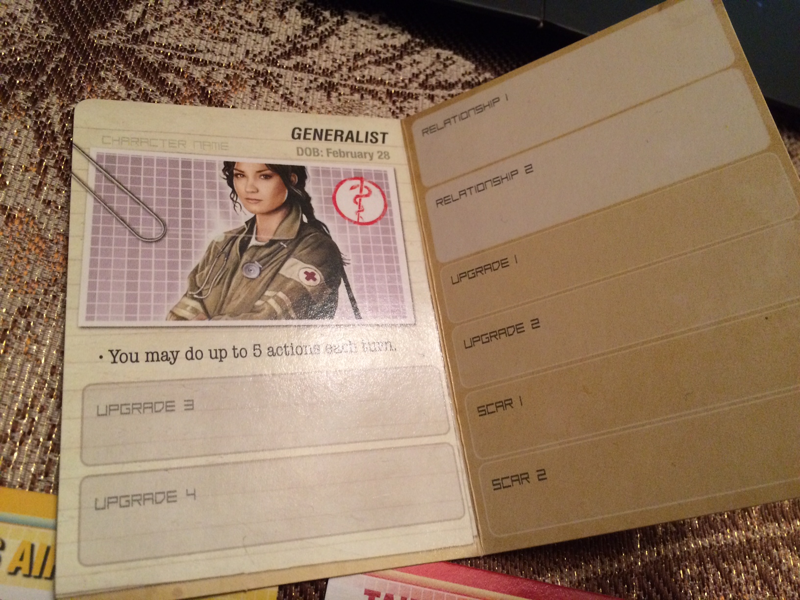 Tied to this campaign are a series of fixed and dynamic elements that will radically shake up the core formula. For example, instead of role cards, you get character cards. The classics, such as the medic, scientist and researcher are here with their same abilities, but the card also has room for upgrades, relationships and scars. Upgrades give characters a permanent boost in some form, and are represented with stickers that are permanently affixed to that character card and are valid until you place another upgrade sticker on top of it. Relationships ______.