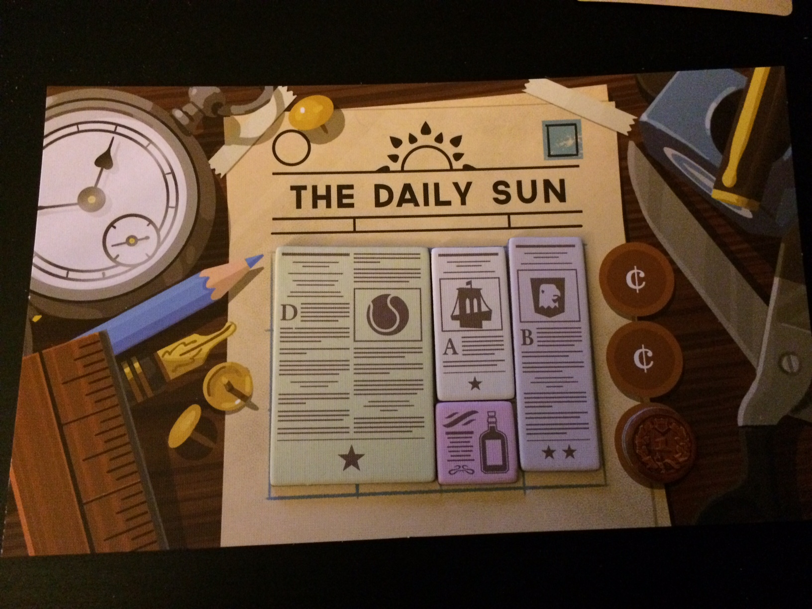 Penny PressRight off the bat, the game caught my attention with a great theme. The concept of running a newspaper, sending reporters out to cover stories and building a front page is fantastic. None of that would matter if the game sucked, but it works extremely well. While most of the actions are fairly simple, there’s definitely strategy involved with how to manage your reporters. There are times when a rival player is about to go to press and you can squeeze out a few extra points by intentionally getting scooped. Depending on whether you’re playing for the most stars or stories that will fit your paper can also be a huge factor in how you proceed.