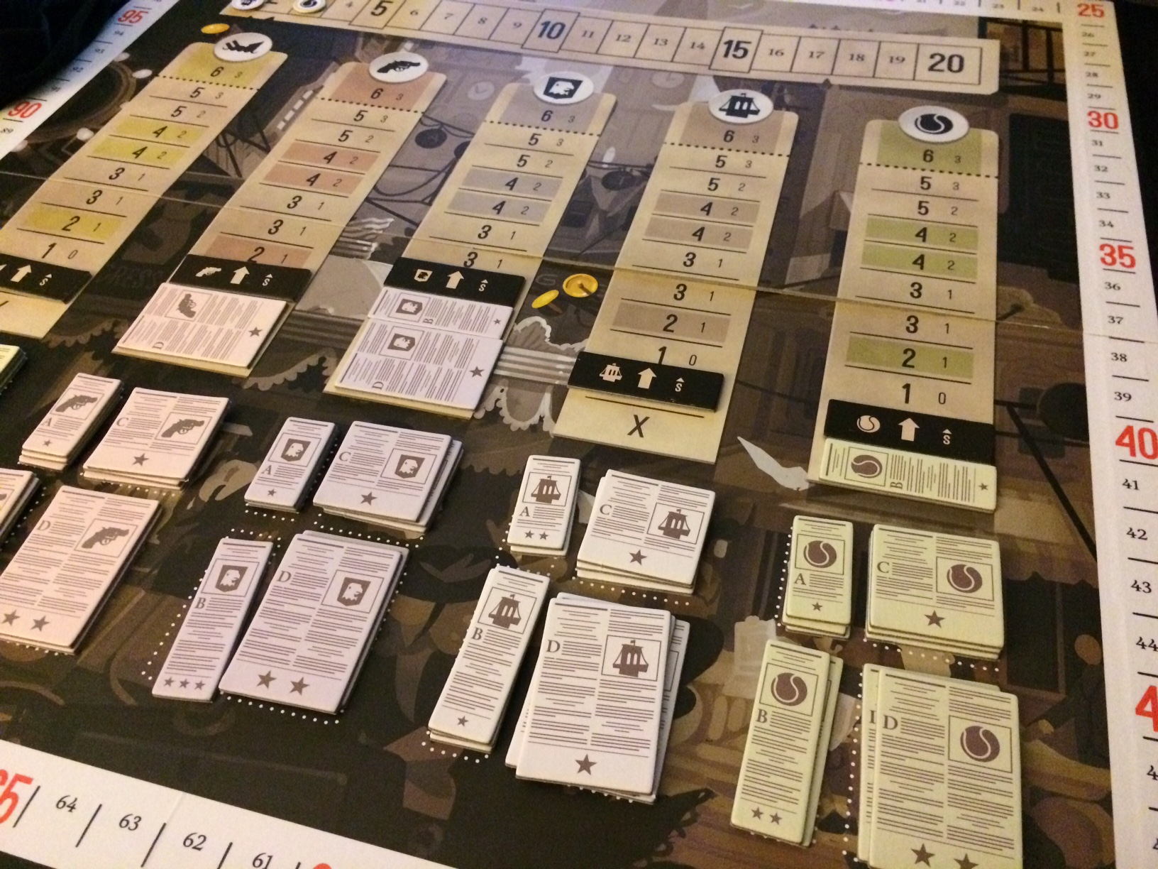 When you have the stories you need, it’s time to go to press. Any stories where you have at least as many reporters as any other player can be claimed. For stories you claimed that had rival reporters on them, they get points for being scooped based on how popular that news beat is. Then it’s time to build your newspaper.