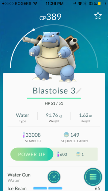 No, not all Blastoises are bad. This one at 389 CP is though. I find it hilarious that two evolutions later, this beast is weak to the point of being useless. That being said, the novelty of it is so high that I couldn’t send it away to the professor.