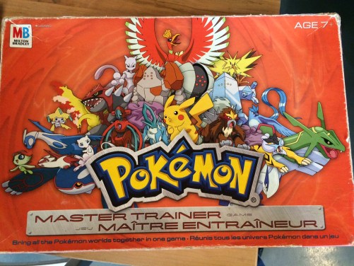 At a recent visit to Snakes and Lattes, my wife and I discovered the Pokemon Master Trainer Game from Milton Bradley. Apparently, this is the third edition of the game, the first of which came out in 1999. 2-4 players will go on a journey to prove that they’re the very best, like no one ever was.