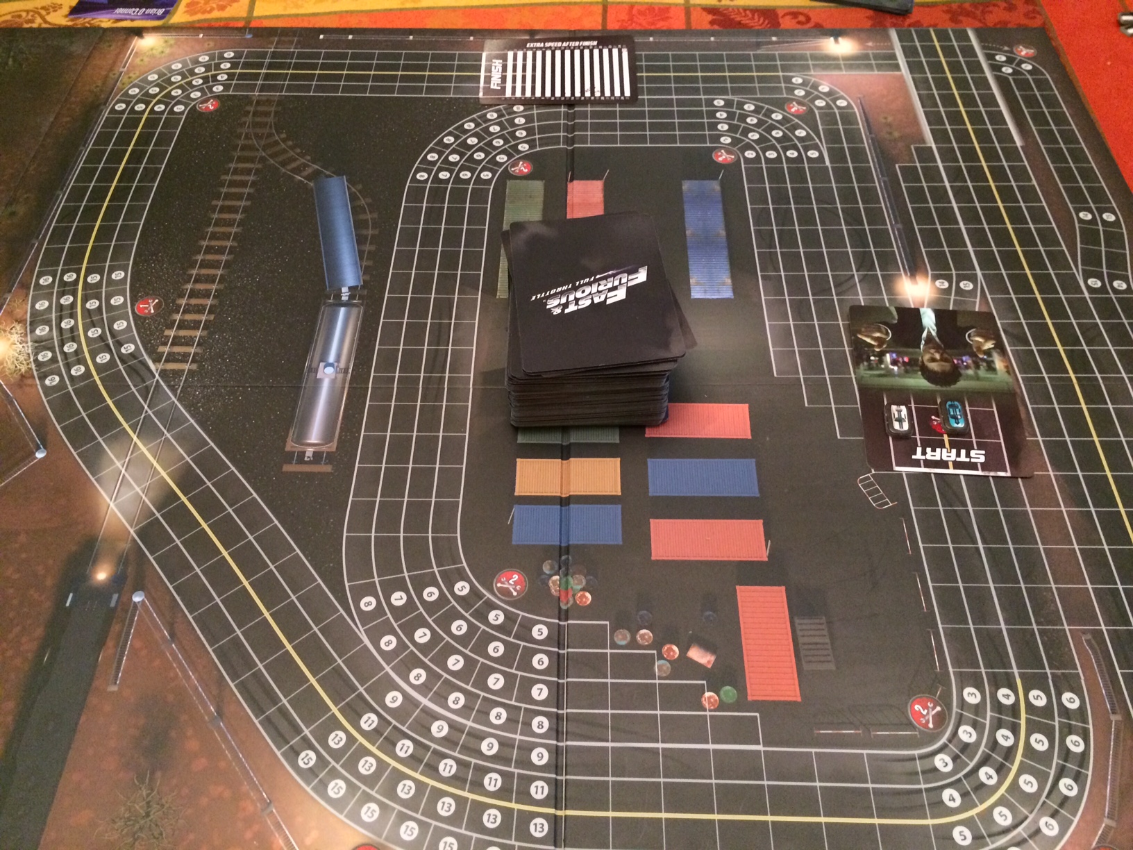 The game comes with a double-sided board that features different road configurations. Unlike most racing games, the tracks are not designed to form a loop. Instead, you get segments of track where you’re free to designate start and end lines wherever you want. It makes a lot of thematic sense, as there was never really circular tracks in the movies.