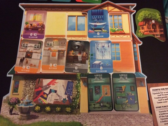 The integration between theme and mechanics is fairly strong. It’s a concept that most players should be able to relate to, and the way that home building manifests itself through the gameplay makes sense. It’s clear why a bigger living room would be more valuable, or why you can’t build the upstairs before the downstairs, or how an interior designer can make your decor better. Because of how drafting works, you’re constantly tasked with making tough decisions of which cards to take relative to what you need now versus what will become available later.