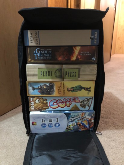 Steff got me a bunch of cool stuff, including a pair of wireless headphones that are a real game-changer for me. But the most out-of-the-box gift she got me was a ChromaCast bag. Specifically designed to house a specific type of speaker, its dimensions are such that it also doubles as an amazing board game bag. It fits the Fantasy Flight box perfectly! Now we can carry and protect our games in transit better than ever!