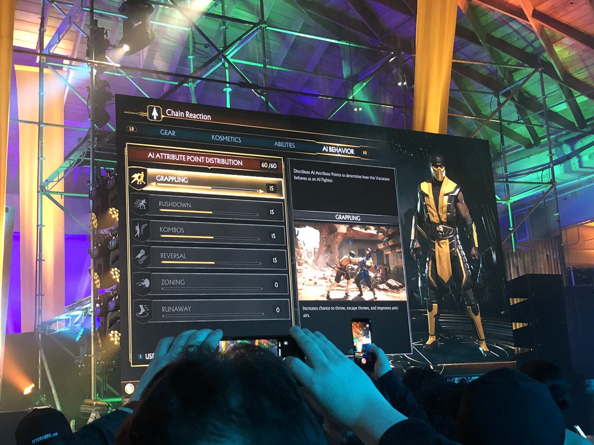 Tons of different options are available to be tweaked, from clothes, to abilities, intro animations, AI behaviours, right down to the look of Scorpion’s spear. I also saw some sort of socket system, which possibly allows for certain gear to provide gameplay boosts. I’d imagine that there would be ways of disabling this for online ranked, but still cool nonetheless!