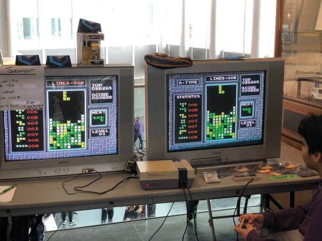 For $1 per play, you could try your hand at the Tetris tournament. Of course I gave it a go. While I held onto the top spot for a time with 101 lines, I was a bit disappointed in my result. Taking for granted that classic Tetris doesn’t use the “bag system” for piece randomization, I built myself too tall of a tower early on, waiting way too long for the right pieces to fall. Spent too much of my time trying to clean up an otherwise avoidable mess.