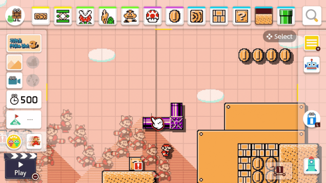 Adding slopes to the mix was just the tip of the iceberg. Nintendo went nuts, adding so many new elements to play with, from snake blocks, to custom forced scrolling, custom win conditions, on/off switches, and more. Even with the original game’s toolset, players were able to create so much. The possibilities with this game seem limitless.