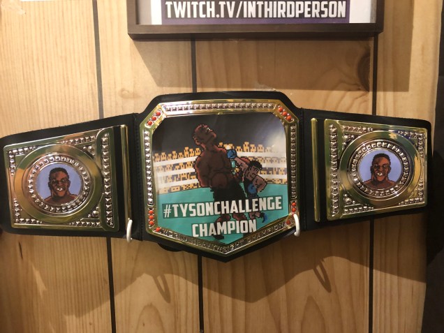 Not going to explain every piece on the wall, but here’s a couple more worth highlighting. I bought a championship belt with the vision of temporarily using it as the #tysonchallenge title before eventually redecorating it to be the Boss Rush belt. However, the final belt looked so good, I couldn’t part with it. It now resides on the wall in Mat’s honour, though someone may win it from him during out next Extra Life marathon!