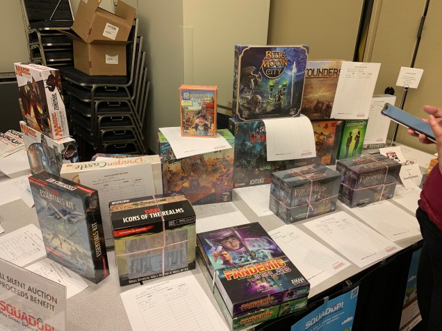 In the role-playing room was a setup for a silent auction. A number of great games were up for grabs to the highest bidder. I bid on a few, but got bested at the last minute. My sister-in-law did get a copy of Operation: Kindergarten though.