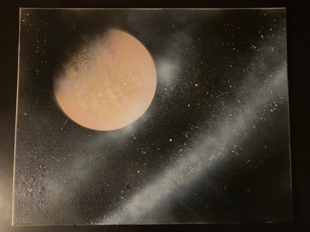 With this first painting, I wanted to keep it simple. The goal was to just paint a planet in space surrounded by stars. Of course, that was easier said than done.
