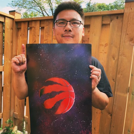 With the galaxy completed, I let it sit for a while and worked on the Street Fighter one. This gave the painting enough time for it to dry, allowing me to place my Toronto Raptors stencil on top without the stencil negatively impacting the existing work. I probably could have done the shading a touch better, but this one had the cleanest execution of the work I did today. Really happy with the final product as well, as it turned out even better than what I initially had in my head!