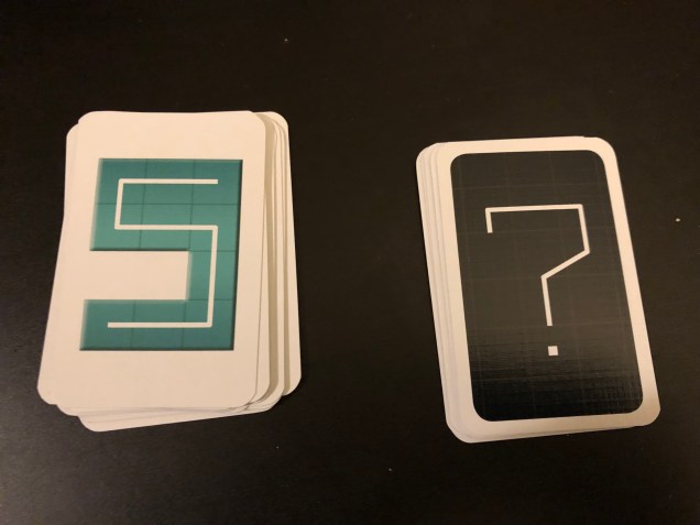 Two-to-four players will compete against each other in this abstract strategy game as they try to build the structure that generates the most points. The pieces you’ll use are shaped like numbers from 0 to 9, while a deck of 20 cards representing two of each number are shuffled and set face-down at the centre of the gable.