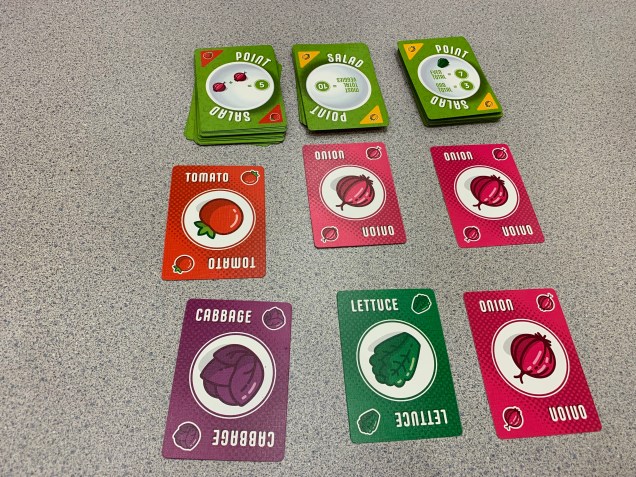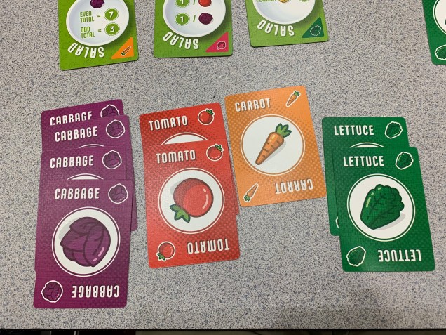 In a worst case scenario, you can convert a salad card into a vegetable card. However, this move is permanent and doesn’t work the other way. Over the course of 15-30 minutes, you’ll be constantly adding ingredients to your salads while changing which types to create in order to get the most points.