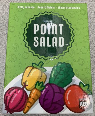 Taking that phrase to its logical conclusion, AEG has published a game called Point Salad. In it, you’re collecting vegetables and salads in order to create the best tasting set of salads at the table. Is Point Salad the definitive point salad game?