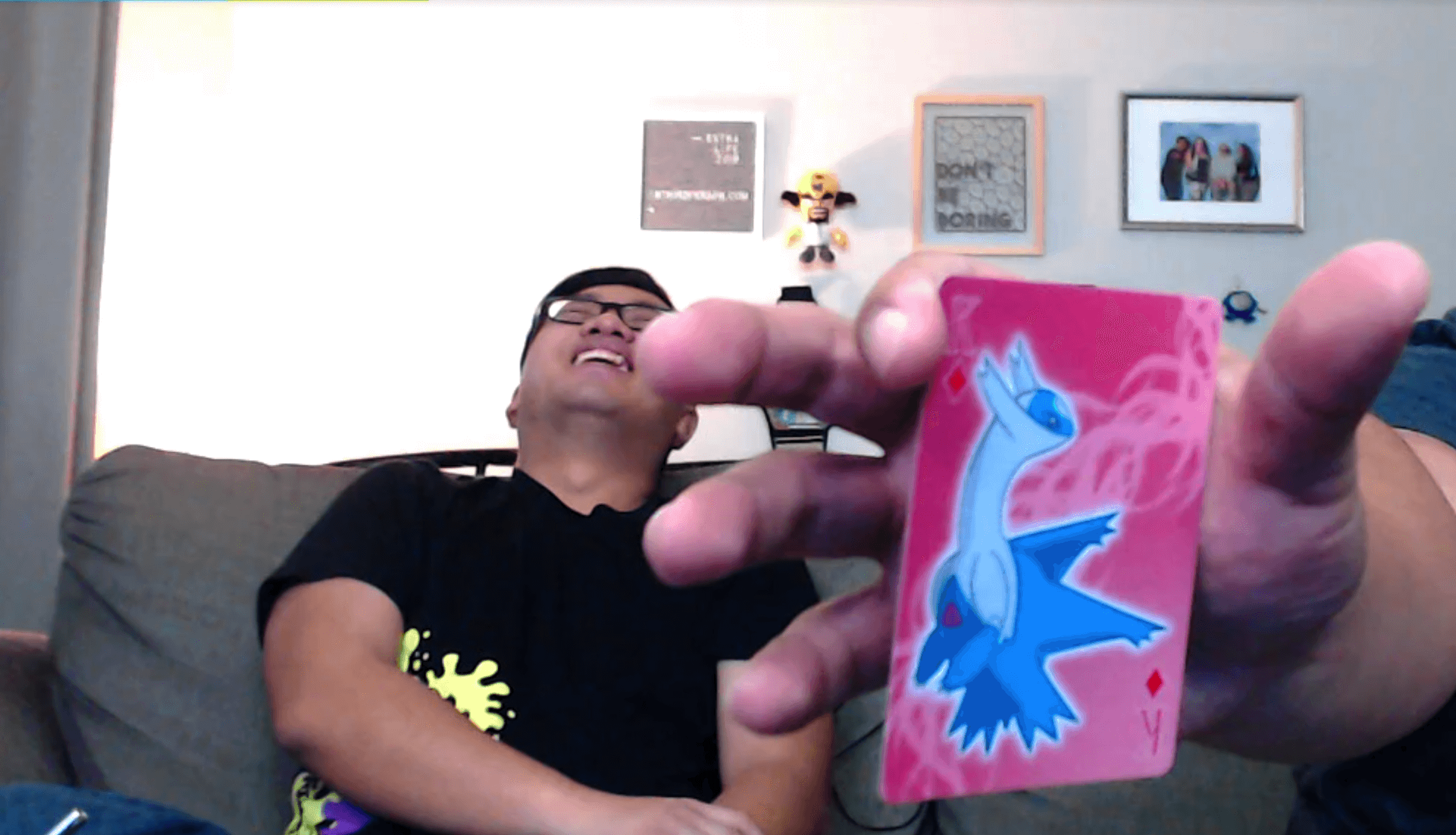 At the last minute, I decided to incorporate a giveaway. Heading into EGLX, I figured that I would be able to find something to hook potential donors in. This time, I decided to give away cards from a pack of Pokemon playing cards designed by an independent artist. For those who donated $20 or more, I would send them a signed version of this card, along with a thank you note.