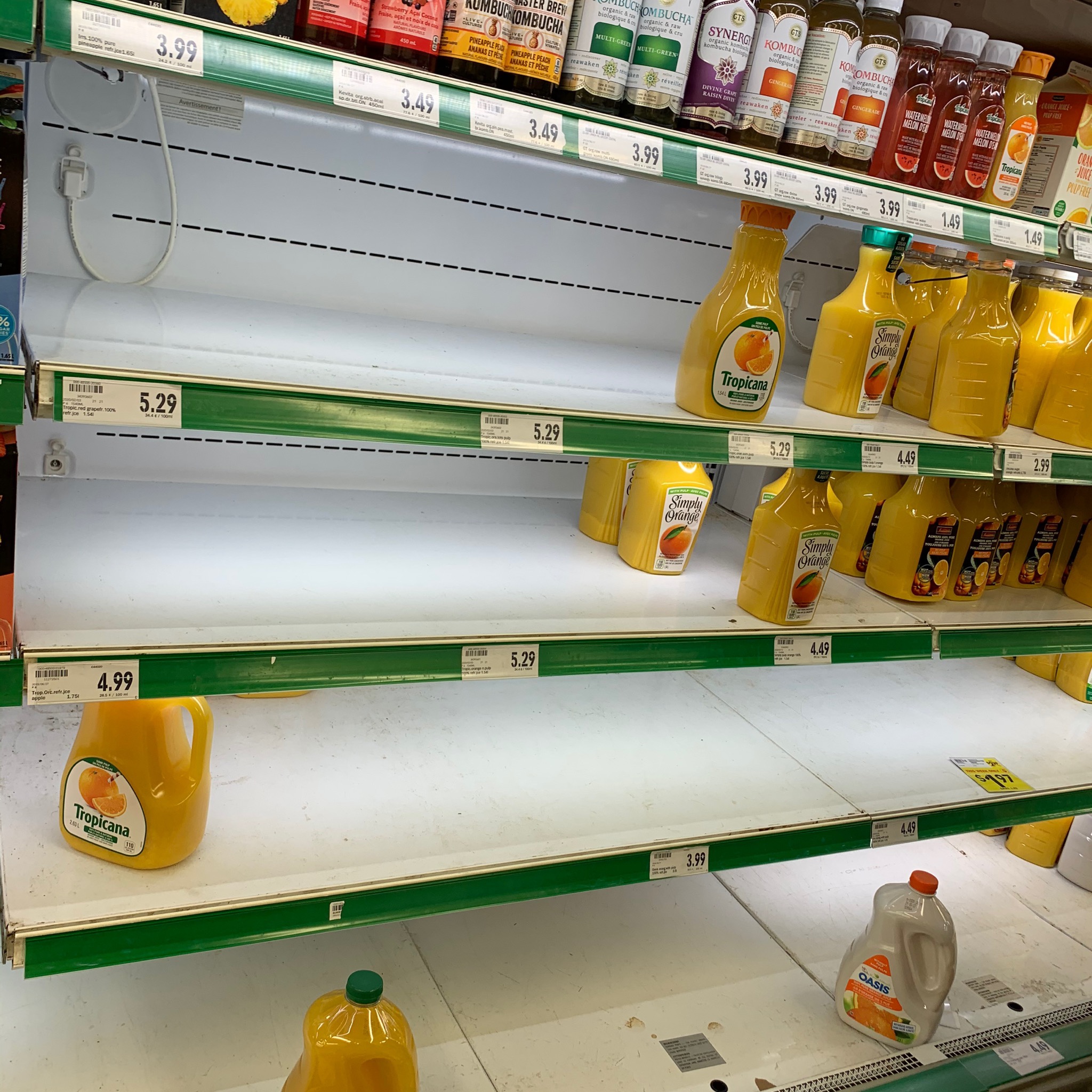 We haven’t reached a point here just yet where people will buy anything. For instance, orange juice with pulp was readily available. Hoping that we don’t get to a point where everything is gone (and not just because I’m avoiding orange juice with pulp).