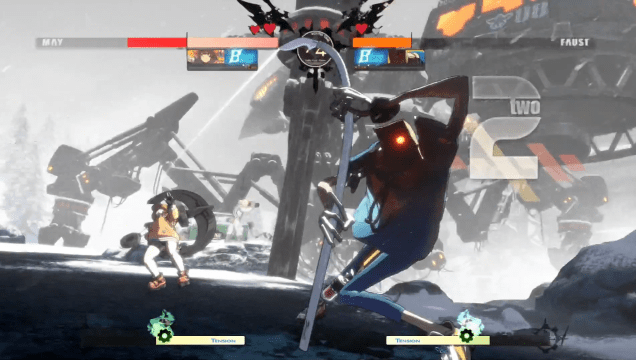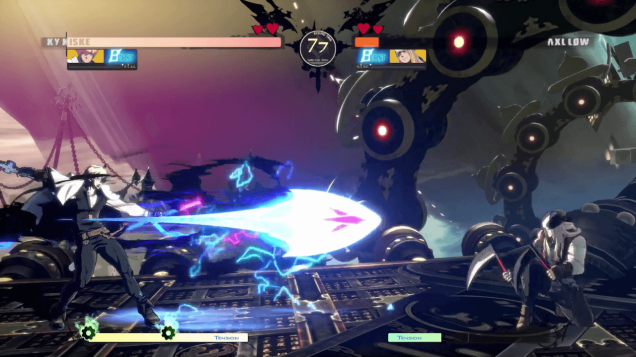 Axl is essentially the Dhalsim equivalent in Guilty Gear. He frequently attacks by throwing his chain scythes around the screen, giving him incredible control from a distance. What impressed me most was the ways that the chains moved around in more circular patterns to feel more like swinging chains than extending sticks. His most fun move is a full-screen command grab that ends with a cinematic clothesline that would make JBL proud.