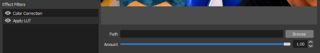 4. Select a LUT. These are PNG files that add a filter to your image. OBS has a few readily available, but you can download more online (more on that in a second).