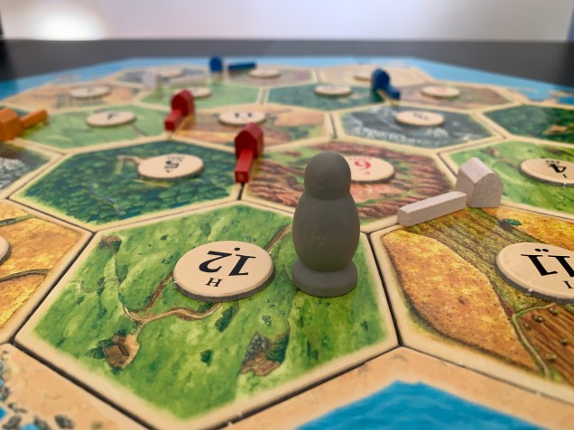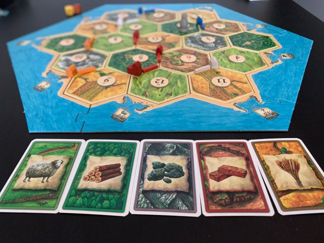 In the moment, I enjoy the thrill that comes from my numbers being rolled and making deals. Even when it’s not my turn, I have the ability to get involved in the action in some way, minimizing the game’s down time. There’s also a lot of strategy that comes from placing settlements and building roads. Maybe too much strategy.
