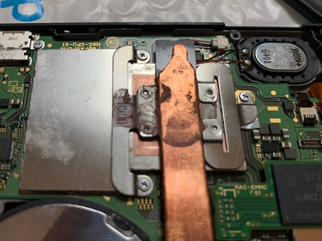 Next major step is to remove the heat sink. It’s attached to the board with three screws by the thermal paste. Remove those.