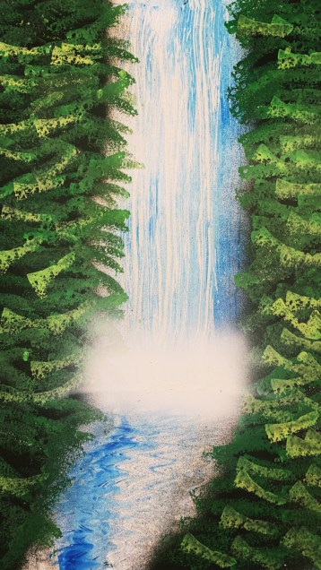 Most of my work takes place in the world of outer space or in video games. But after watching a video where a much more talented artist created a waterfall, I tried my own take based on a loose recollection of how she did it.