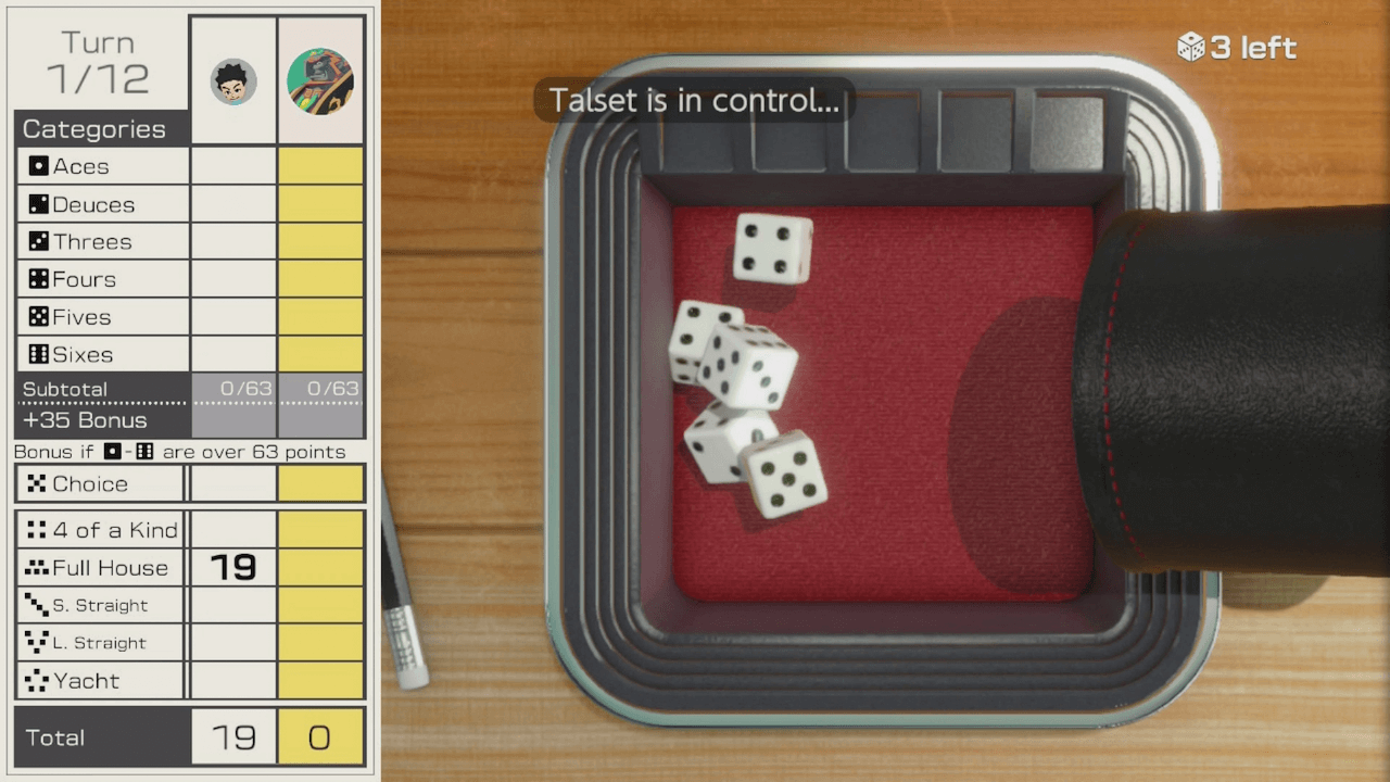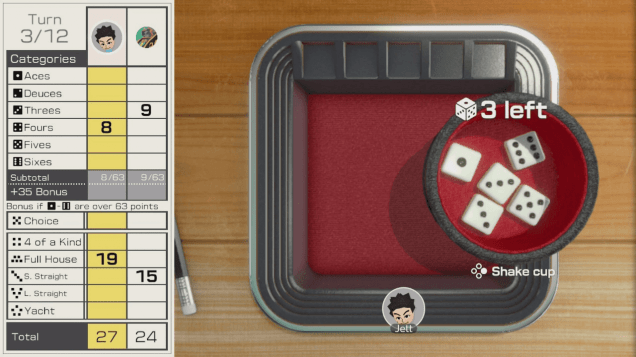 Despite the immediate salt, my wife Steff calls for another rematch. We were already hours deep into this extended Yacht Dice session and would end up playing many more. I may have never discovered how fun Yacht Dice (better known as Yahtzee outside of the game) is had it not been for a series of events that led to me picking up Clubhouse Games: 51 Worldwide Classics.