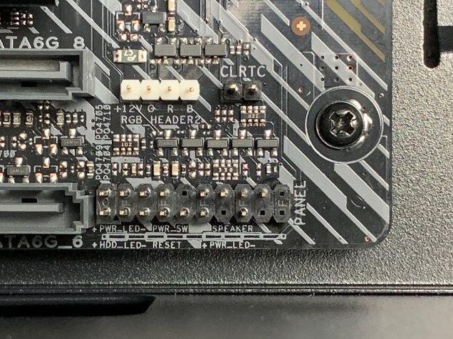 Another annoyance in the process was this section of the motherboard that controls system lights and speakers. The plugs you end up using will depend on your case. Though I’ve been told that some cases consolidate this into one plug mine came with a number of single-prong plugs instead. I understand that you might need some flexibility for varying board layouts, but it requires a steady hand to get everything plugged in.