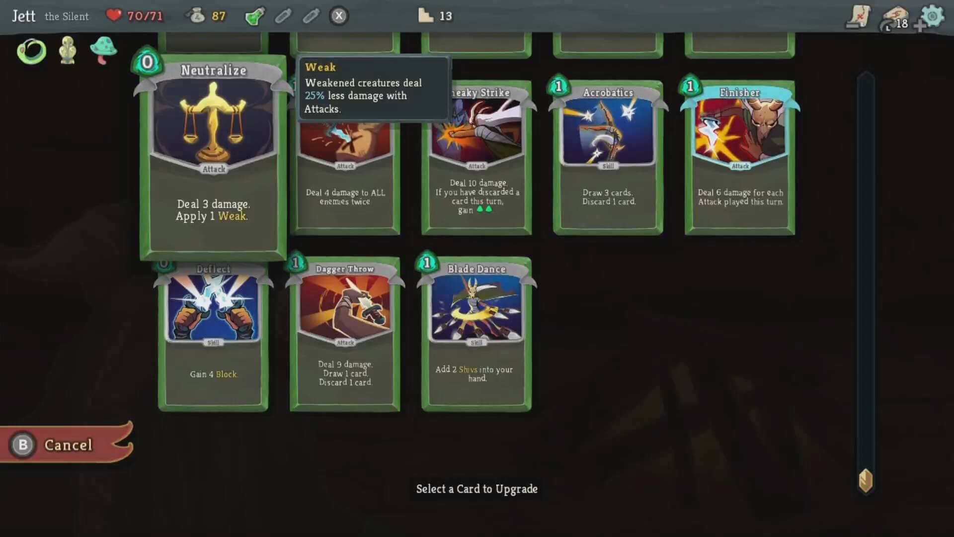 Speaking of which, your goal is to climb to the top of the tower while overcoming all challenges along the way. You’ll fight standard enemies, elites, bosses at the end of each Act, and may get caught in a sticky situation depending on which events you trigger. There are also shops where you can spend your gold on a random assortment of improvements, and rest stops where you can either regenerate some of your health or upgrade a card.