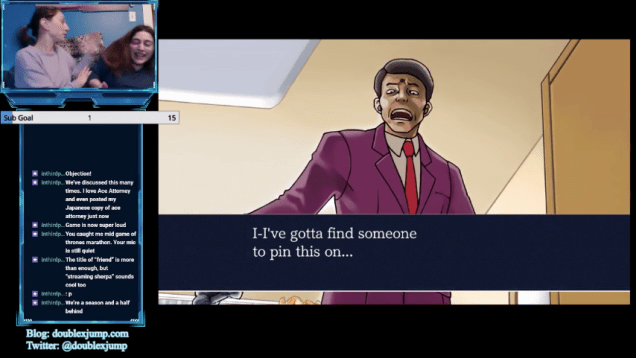 Rachel gets a little too immersed in her role during a Phoenix Wright let’s play. Watch the full clip over at twitch.tv/xdoublejump
