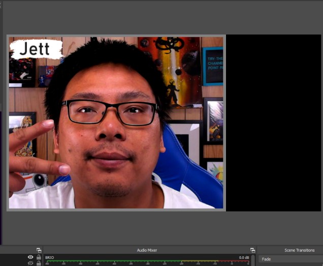 Here’s another example. I use a variation of my face camera for gameplay that includes a border, paint splash, and my name. Instead of grouping those scenes together, I created a separate scene with all of the elements together and dropped the single scene within my gameplay view.