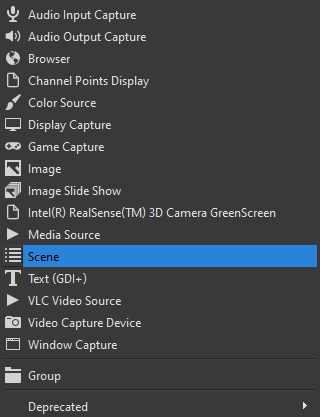 Then, pick a scene from your scenes list. Ta da! Your scene is now inside another scene.