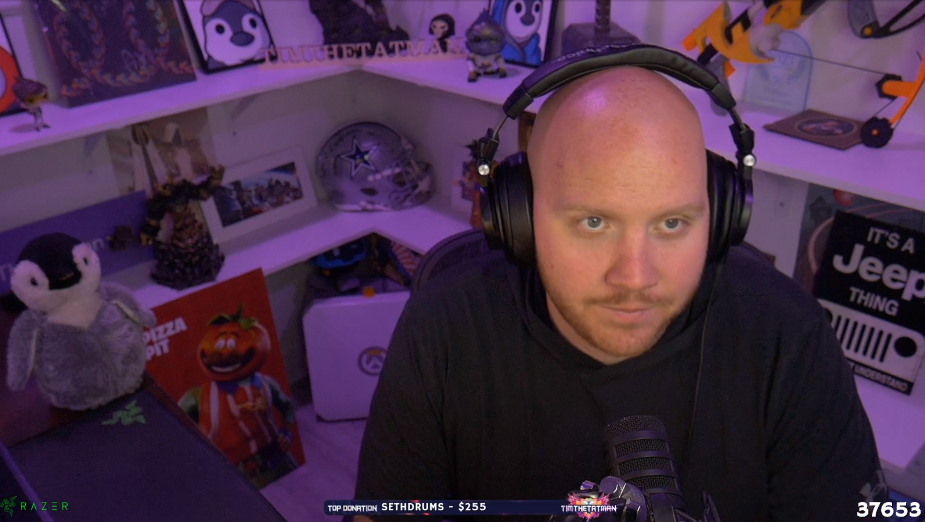 Then came the inclusion of the intermission screen. Moving the gameplay aside or off of the screen entirely, this is the place where the streamer is in full-view, engaging with their audience. These interactions between streamer and audience hit the core of what makes the medium of streaming magical. The effect is amplified by expanding the view to your world so that viewers can see you clearly. Drawing from an extreme case in my own viewing habits, I’m not at all interested in the games that TimTheTatman plays. However, I tune in just for his intermissions cause he’s such a cool dude when he’s just hanging out with his audience.