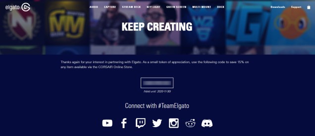 As part of the rejection notice, Elgato also sent me a 15% off coupon for anything in their online store. In talking with others who have applied, it doesn’t seem like everyone gets a code. Not sure how their program determines who gets a code, though I’m curious to learn more. Nevertheless, it’s a shot at a coupon you can use on streaming gear!