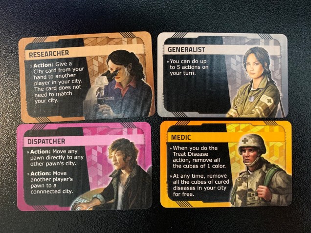 Each player will assume one of the four available roles. The Researcher is able to share information more freely than the others. The Dispatcher can move other pawns around the board. The fan-favourite Medic is the most efficient at treating diseases. Last but not least is my personal favourite, the Generalist. They get one extra action per turn, making them an all-around great choice. Regardless of what combination of roles are in use, it’s in everyone’s best interest to leverage each role’s strengths to improve your odds at winning.