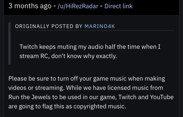However, you can be subject to copyright claims, audio muting, and DMCA strikes for more than just the music you play outside of the game. In-game music can get you in trouble too. Was most recently reminded of this thanks to Rogue Company.