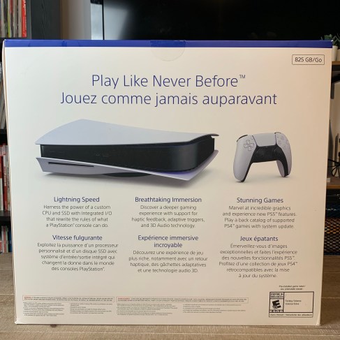 In case you’re wondering, here’s what the back of the box looks like. 825 GB is a weird number to advertise. I initially thought it was a 1 TB and they advertised the actual usable space, but it turns out that the full drive is actually 825 GB, of which 667 GB is actually usable. That’s like, five Call of Duty games at this point. Resolving the potential storage shortage is an issue for another day. Let’s keep going!