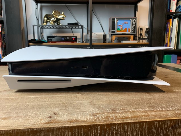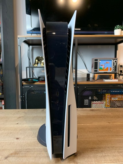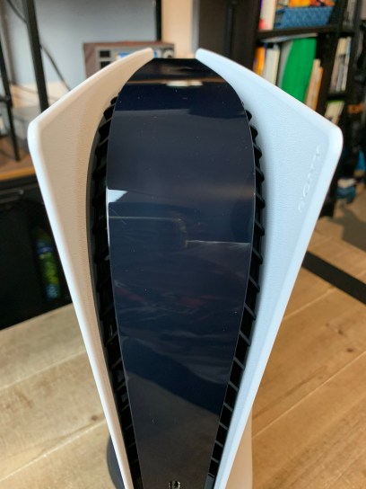 Between the two white panels and the shiny black plastic are vents that line all the way around the console. Certainly a different approach to the Xbox Series X, where all of the heat is dissipated through one giant vent at the top. I have a lot more confidence in Microsoft’s solution, but I hope the PlayStation 5 doesn’t have any issues with overheating.
