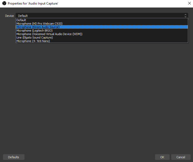 5. If you’re just using your phone as a webcam, you won’t need to use your phone’s microphone. But if you plan on doing vlog-style content around the house and need your phone mic, adding the video source does not automatically activate the mic. Add a new audio source in OBS and select “Microphone (Konini Audio Source)”. Considering how Elgato has bought Konini, this name will likely change in the future and I will update this guide accordingly.