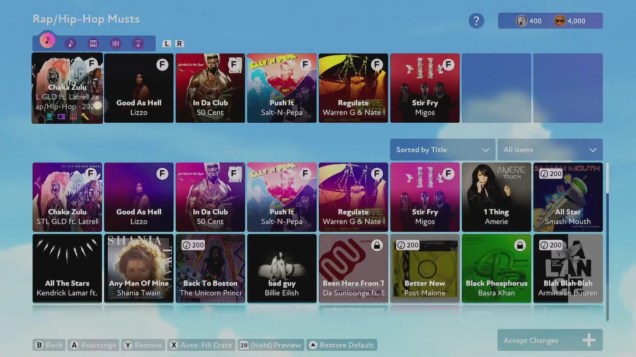 Contained in the game are 100 songs. 70 are from big names such as Cardi B, The Killers, and Dolly Parton (!). The remainder comes from lesser-known artists. Its setlist skews towards DJ-centric genres such as EDM and hip-hop, but a tracks from other genres make the cut as well.