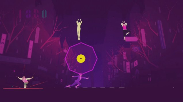 Each level of the game is tied to a song. Controlling The Fool, you’ll use the analog stick to move your character and a single face button for timed button presses. Your primary goal is to get to the end of each song, though you can gain higher completion rankings by collecting as many hearts as you can strewn about each level. Levels can get tricky in spots based on the sheer speed and flashiness of each moment, but the penalty for failing is basically nonexistent and the option to skip a song if it’s too tough appears after a number of consecutive fails.