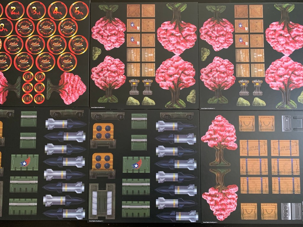 Let’s start with the base game. It comes with six characters, one double-sided board, and all of the accessories you’ll need to get started. One may debate which characters should have made it into the base set, but I’m okay with who they chose. Ryu and Chun-Li are locks. Ken might be very similar to Ryu, but he’s wildly popular and you can’t leave him out. Zangief is a popular character who also serves as the de-facto grappler archetype. Sagat and Vega are two original boss characters who specialize in ranged attacks, which gives the base roster a decent mix of play styles.
