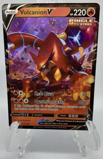 Volcanion V was one of the first big cards we pulled from Chilling Reign. Heat Blast for 50 damage and two energy isn’t great. Where the true potential of this card lies is in Dynamite Tackle, which can hit for upwards of 250 if it’s already taken damage.